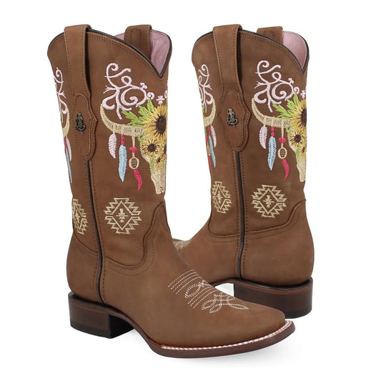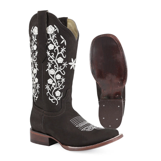 Bota vaquera para dama de piel modelo Coqueta chocolate